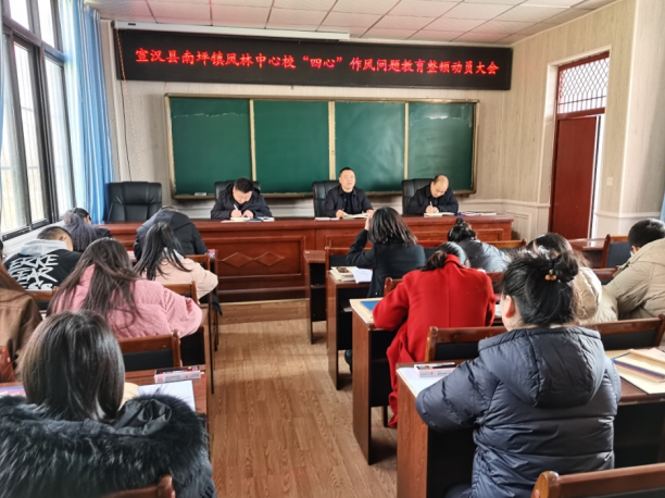2022年2月16日下午,宣汉县南坪镇凤林中心校全体教职工在学校会议室召开了“四心”作风问题教育整顿动员大会。会议由校长廖小菲同志主持,专职副书记刘承刚同志作动员部署。
