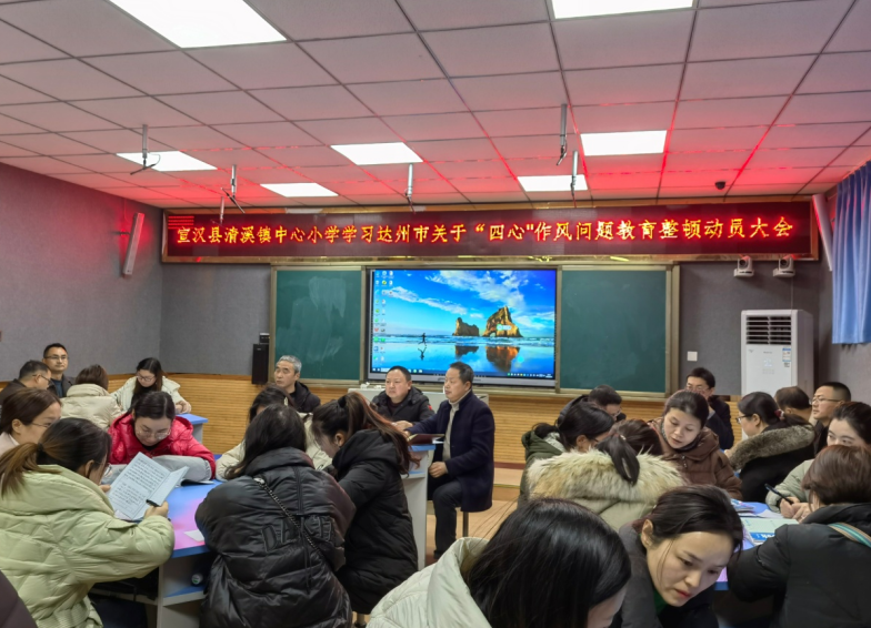 为进一步巩固党史学习教育成果,贯彻落实《达州市教育系统干部职工“四心”作风问题教育整顿实施方案》文件精神,2月18日下午,宣汉县清溪镇中心小学在录播室召开了“四心”作风问题教育整顿动员大会。