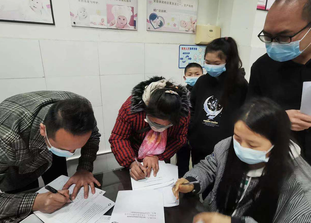 3月6日,在观音镇派出所民警的帮助下,成功联系到四川旭日司法鉴定所的工作人员,学校校长刘广国携班子成员陪同贫困学生胡兴兴姐弟及其母亲到达大竹县妇幼保健院。在司法鉴定人的组织下,通过核对需鉴定人的身份信息、出具司法鉴定委托书、签署亲子鉴定委托书、出具无法提供亲属身份证明的情况说明、采集血样(整个亲子鉴定过程均留存视频影像证明)等一系列程序之后,胡兴兴姐弟及其母亲成功完成亲子鉴定程序。