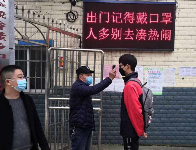 演练中,学生自觉佩戴口罩,排队保持1米以上间隔,有序接受体温检测进入校园。教师检测到一名学生体温异常,超过37.3℃,学校立刻启动入校发热学生应急处置方案,暂停测温。引导该生到达指定隔离室做进一步检查,利用水银体温计进行复测并报告上级领导。询问该生当前身体、近期行程状况,包括有无疫情重点地区旅居史、途经史或有确诊、疑似病例接触史,详细填写学生信息追踪表并做好消杀工作。整个演练过程中,全体工作人员各司其职、密切配合,针对各种模拟的异常症状启动相应工作流程,科学、规范、有序地进行处置。