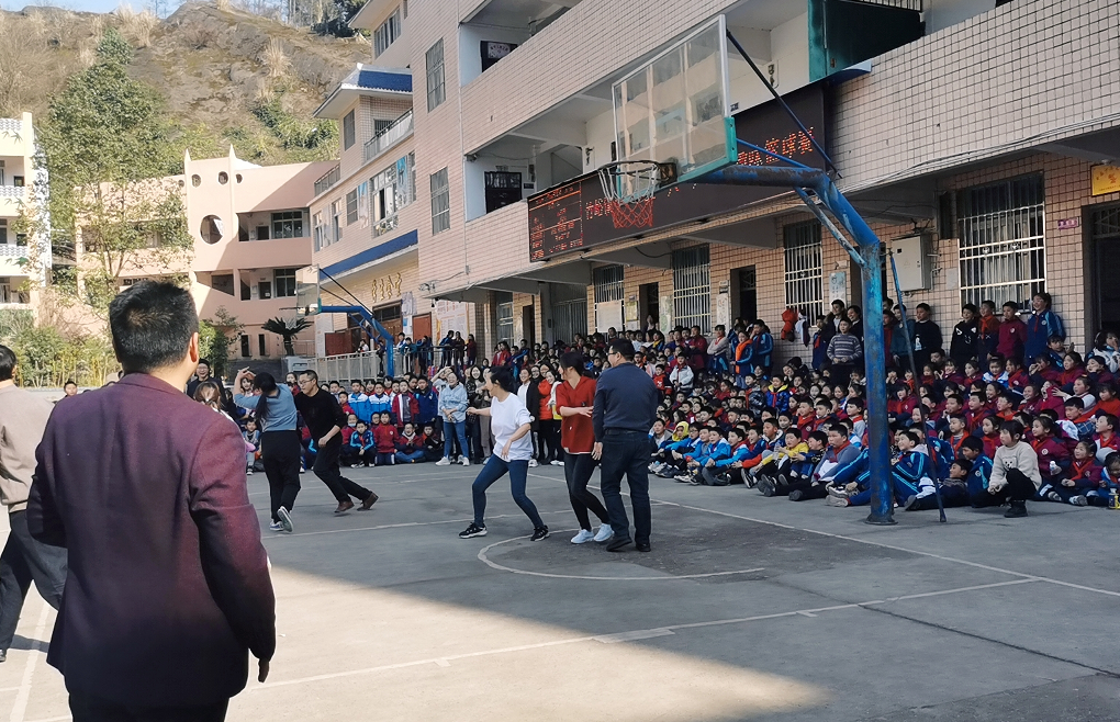 万源市竹峪镇小学,校际交流活动,竹峪镇小学为庆祝第112个“三·八”国际妇女节,丰富教职工课余生活,3月8日,竹峪镇小学举行了趣味篮球赛。