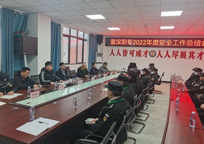 1月12日下午,宣汉职专召开2022年安全工作总结会。学校安全领导小组成员、安保处全体工作人员参加会议。